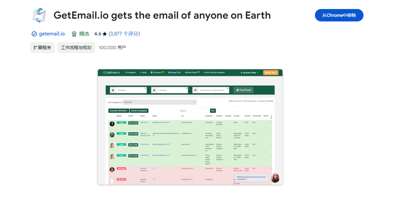 这个扩展程序可以帮助用户从网络上的任何地方查找电子邮件地址,只需单击一下即可,非常方便。
